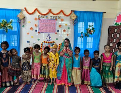 It was a twin celebration on 5th September in SRI SANKARA GLOBAL ACADEMY, thoraipakkam. The day was special because the KG section students came dressed up as Krishna or Radha. A special bhajan was held to mark the occasion and after the pooja sweets and savouries were distributed to everybody. After seeking the blessings of Lord Krishna, we had the celebration of Teachers’Day.Teachers were honoured with a variety of entertainment programmes and the day was really special for all the Staff members.